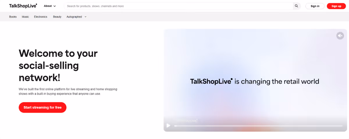 TalkShopLive is a U.S.-based live shopping platform built around interactive, host-driven shopping shows. The platform combines livestream entertainment with integrated purchasing, allowing viewers to discover and buy products while watching live or recorded broadcasts. TalkShopLive positions itself as a commerce-meets-media platform, where brands, creators, and celebrities host shows designed to drive product discovery and real-time sales within its own marketplace environment.