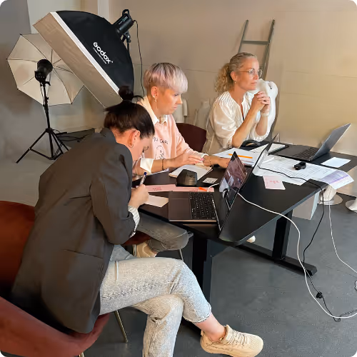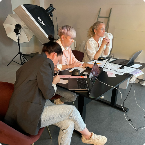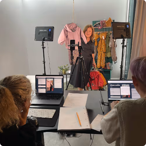 Behind the camera, a three-person team managed the production — directing, handling the technical setup, and engaging viewers in the chat. A live model showcased products on request, adding a dynamic touch to the stream.
