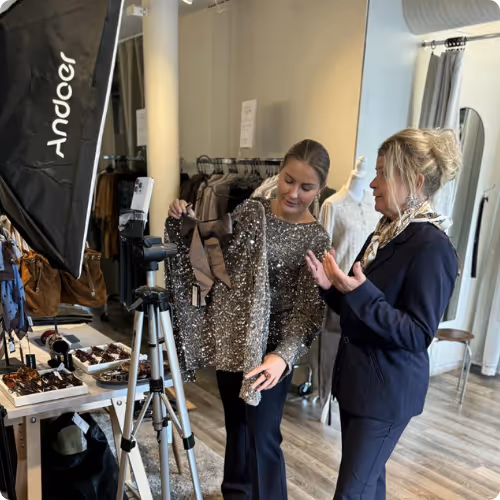 The format is simple and personal — just like shopping in their boutique. Viewers join from across Sweden, chatting directly with Susanne and Celinn as they present, try on, and discuss each product live.