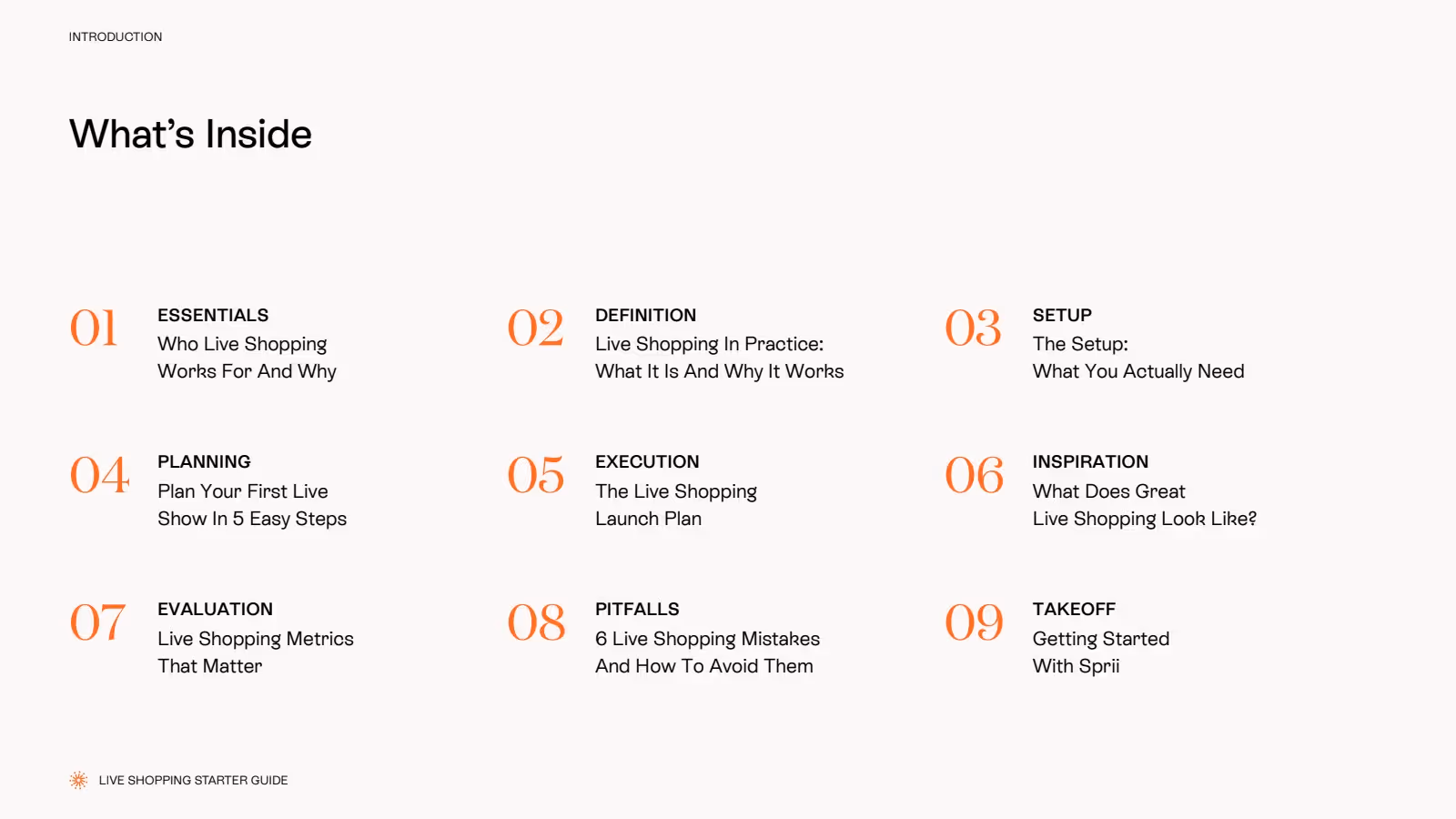 42 pages of frameworks, real examples, and practical checklists to launch your first high-performing Live Shopping show.