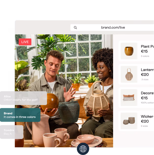 Bring your products to life, spotlight unique selling points, and sell more by streaming Live Shopping events directly from your website.