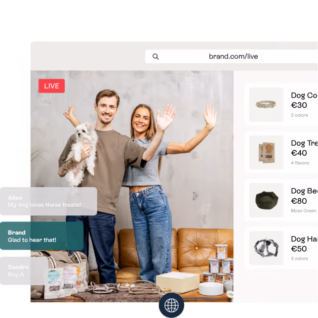 Bring your products to life, spotlight unique selling points, and sell more by streaming Live Shopping events directly from your website.
